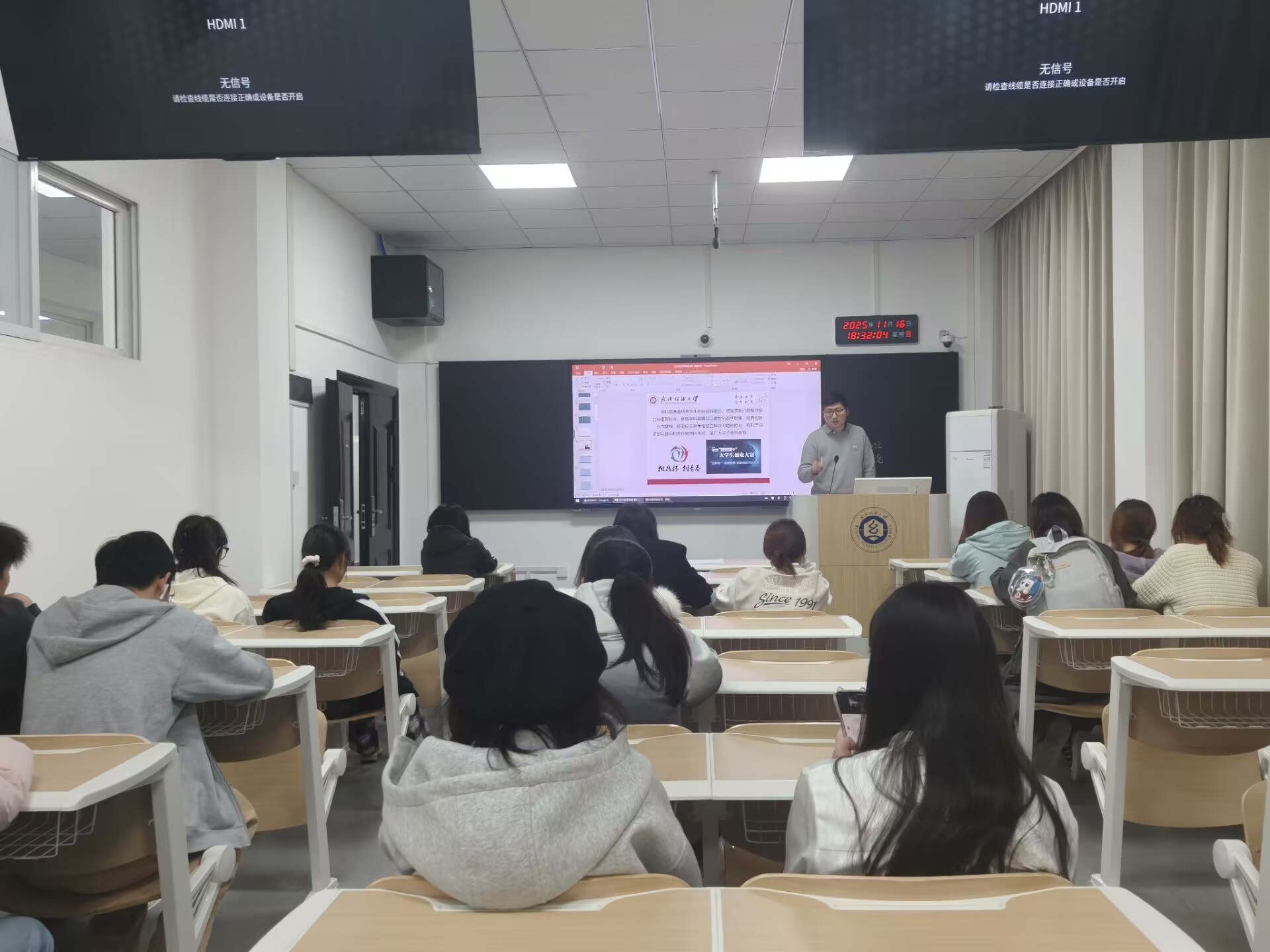 随后老师们进行了本科生科研竞赛、创新创业项目评选政策宣讲,详细解读了“大创计划”、“互联网+”大赛等重磅赛事的参赛流程与激励政策,强调了项目申报的规范性与创新性。同时鼓励同学们积极组建团队,提前联系导师,将专业所学与前沿科技相结合,力争产出高水平成果。