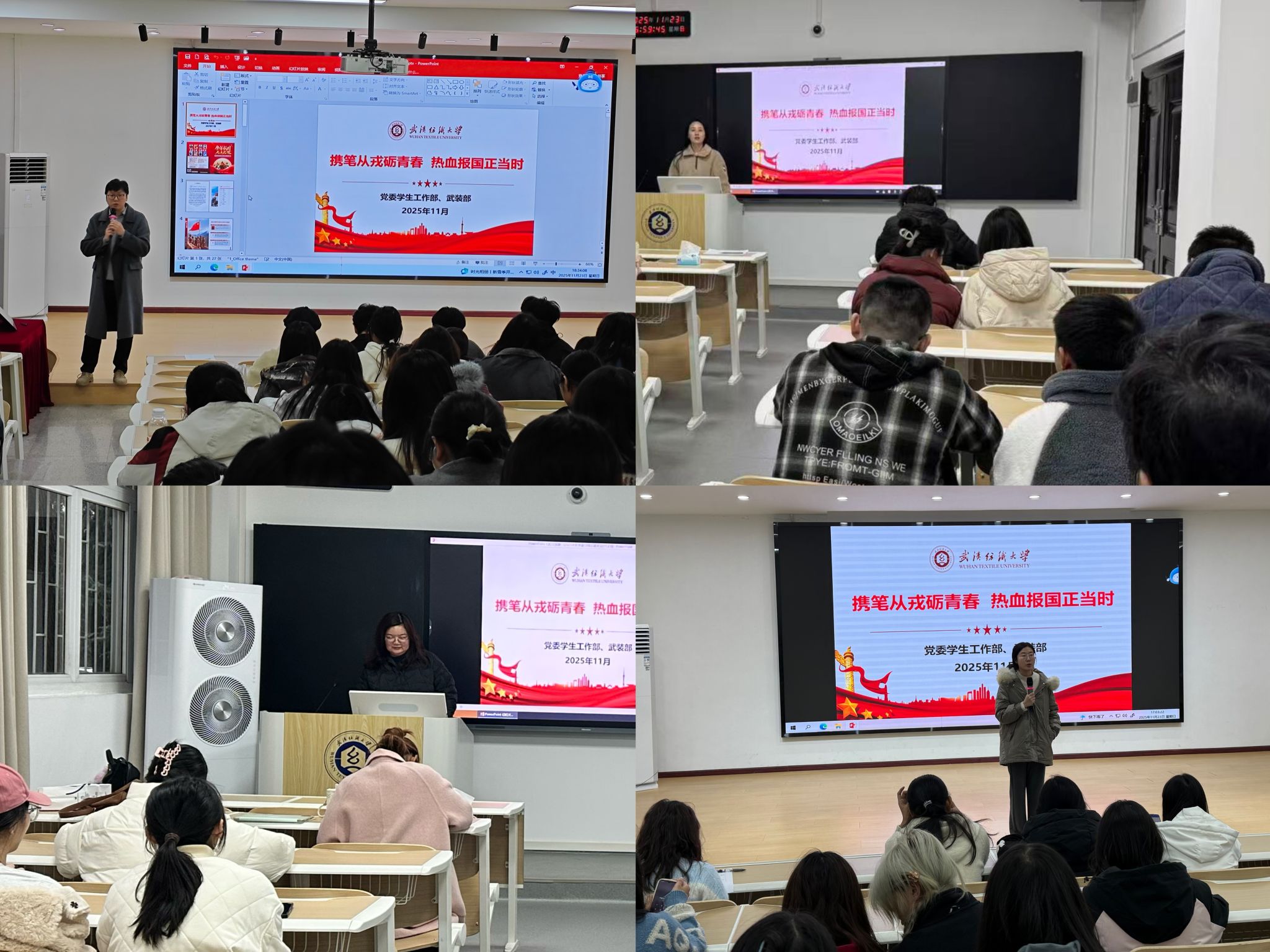 各年级辅导员以习近平总书记对广大青年的嘱托开篇,指出大学生参军入伍不仅仅是宪法法律上的义务权利,更是每一个中国青年在民族复兴中应承担的责任。通过例举传媒学院历届学生应征入伍学子风采,鼓励大家磨砺青春、投身国防,让青春之花在祖国需要的地方绽放光彩。