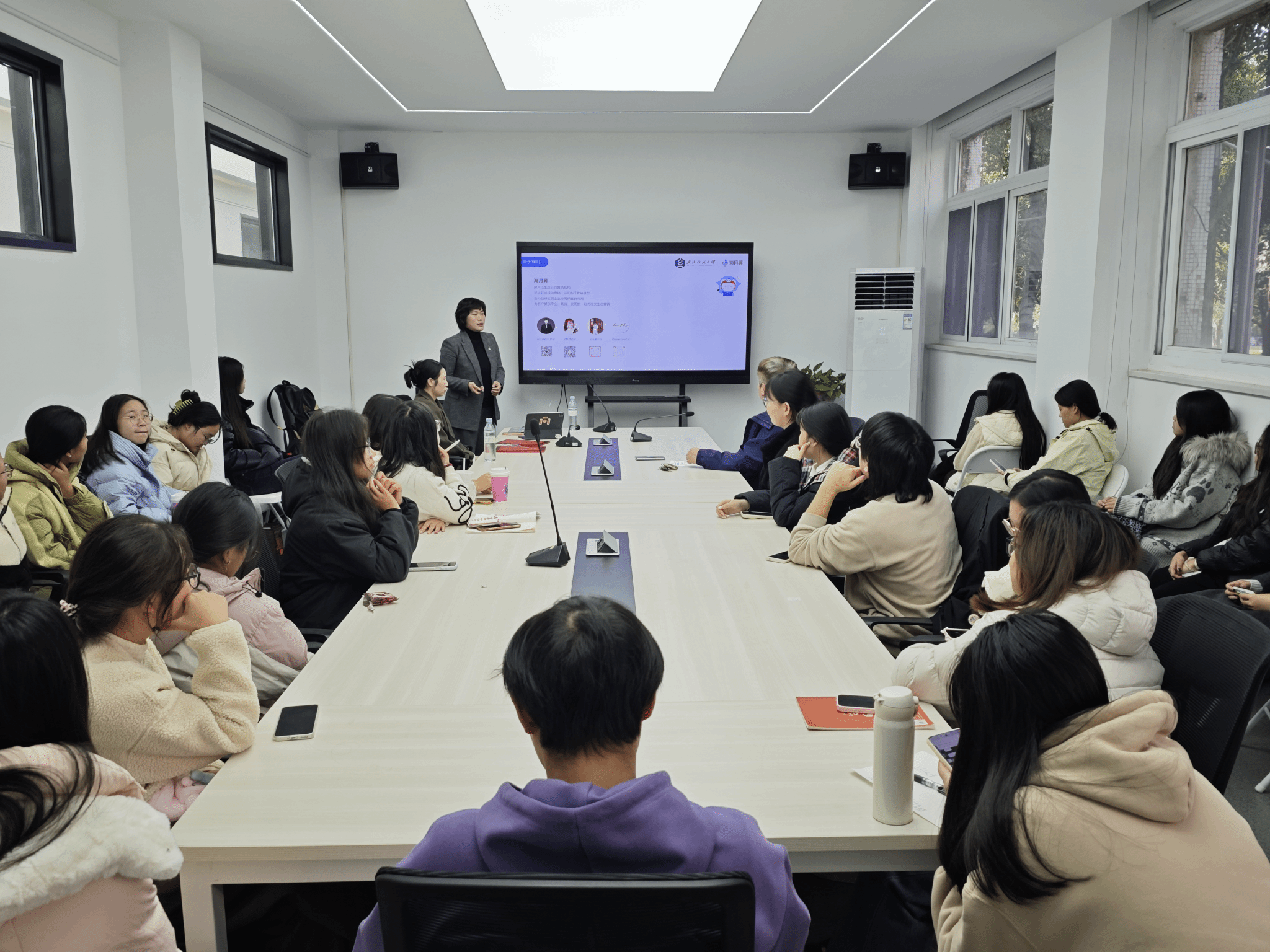 为落实学生工作数字化转型,赋能学生干部能力提升,培养兼具数字化技能与实战能力的复合型学生骨干,11月20日,“燃光心语”辅导员工作室“AI数字人与短视频制作”学生干部能力提升训练营开班式在西配楼S105学术会客厅举行。海月昇(武汉)传媒有限公司总经理张琼、副总经理蔡文婷,传媒学院党委副书记刘登冉,广告学系主任冯易、团委书记谭安捷、训练营课程负责人陶长春和学院全体辅导员参加开班式,学院30余名学生骨干参加学习。工作室主持人王然主持开班式。