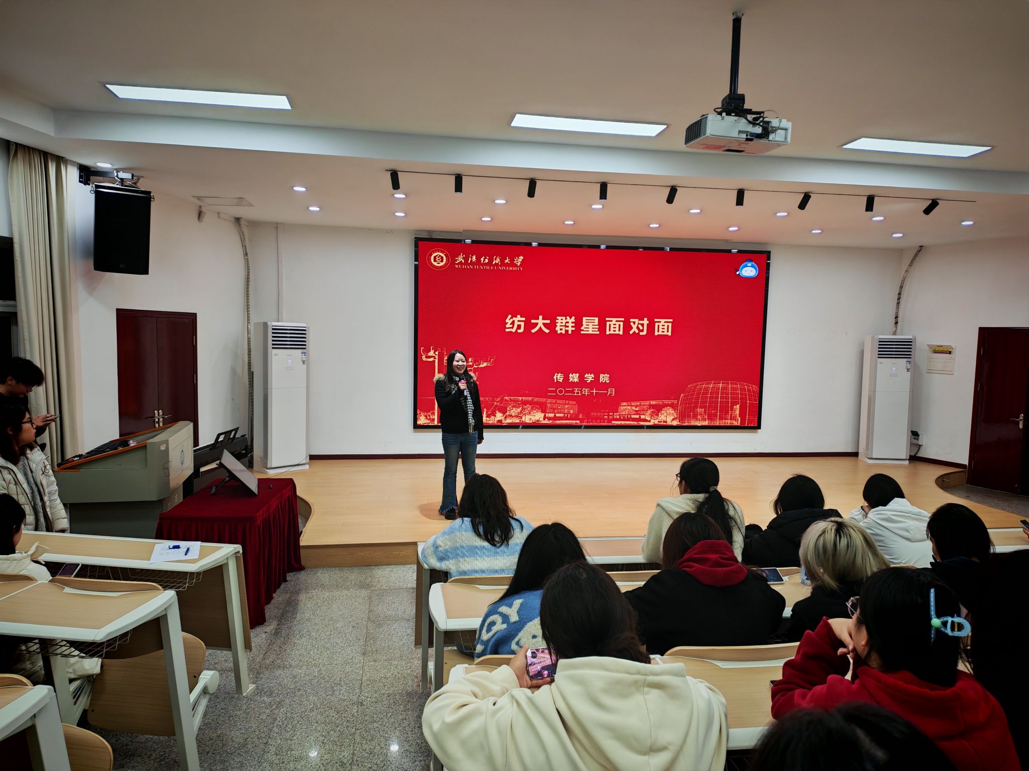 11月23日下午,传媒学院“榜样领航---保研学子面对面”经验分享会在南湖校区“一站式”学生社区服务中心“青春会客厅”温情开讲。保研至中南财经政法大学的广电 12201 班陈茜围绕大学学习规划、自我定位、毕业路径选择等学生关切的核心话题,分享成长体悟与实用经验,2025 级全体学生到场聆听,在与榜样的近距离交流中明晰成长方向。
