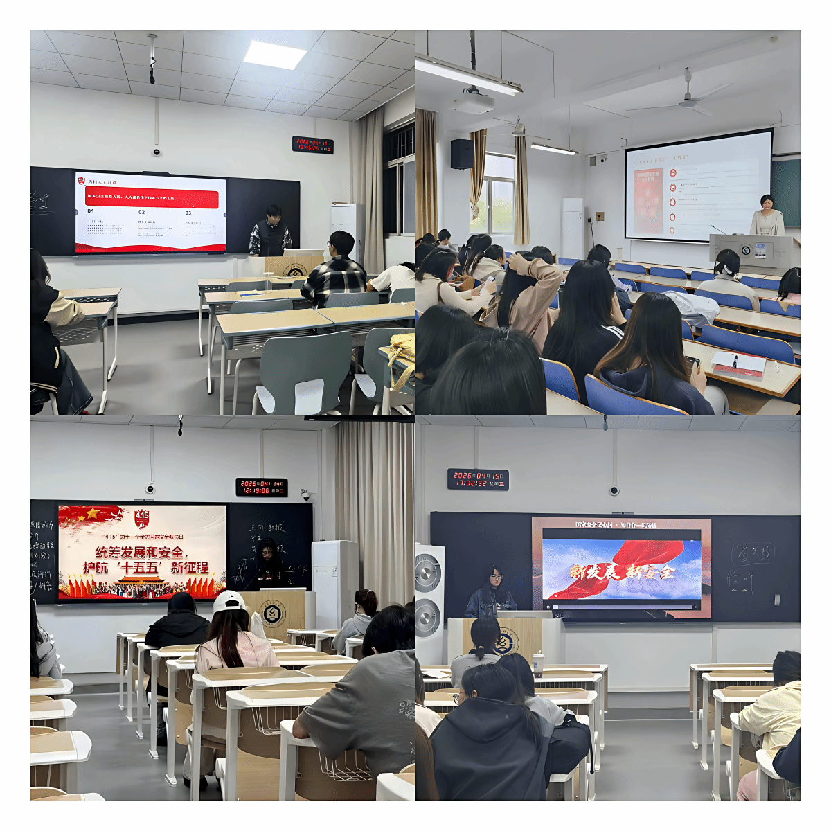 为丰富国家安全教育形式,增强学习吸引力与实效性,各班级在辅导员老师指导下,精心设置视听学习与互动实践环节,让安全教育“活”起来、“实”起来。各班统一组织观看国家安全教育主题微电影,影片以真实事例为蓝本,通过直观生动、富有感染力的视听语言,生动讲述新时代维护国家安全的感人故事,深刻诠释总体国家安全观的丰富内涵与实践要求,同学们在沉浸式观看中感悟初心、凝聚共识。同时,各班积极开展国家安全知识快问快答互动活动,围绕国家安全重点领域、法律法规、防范技能等内容进行现场提问,同学们踊跃参与、积极应答,在轻松活泼的氛围中巩固学习要点、检验学习成效,实现以问促学、以答促记、寓学于乐、学以致用。