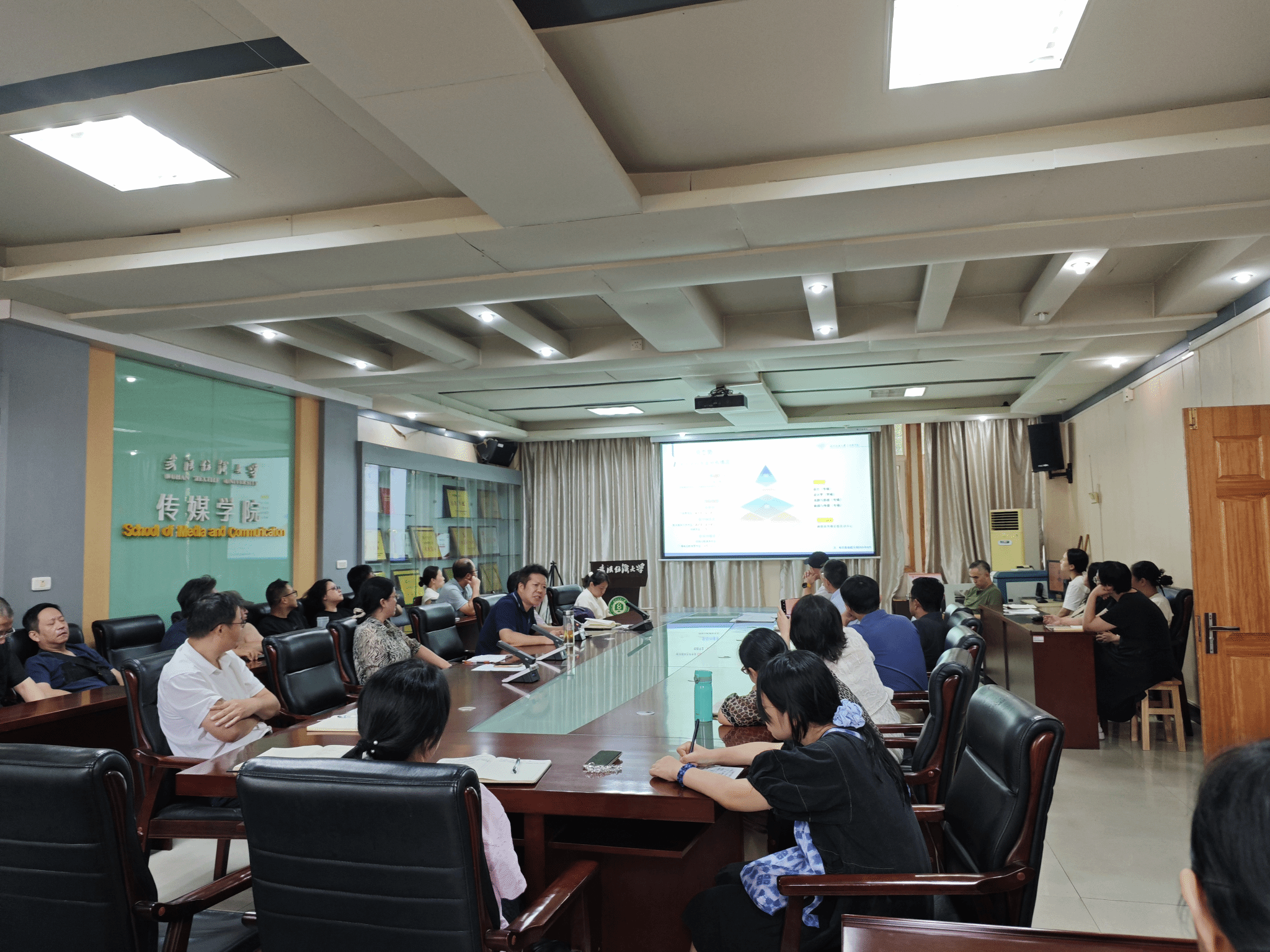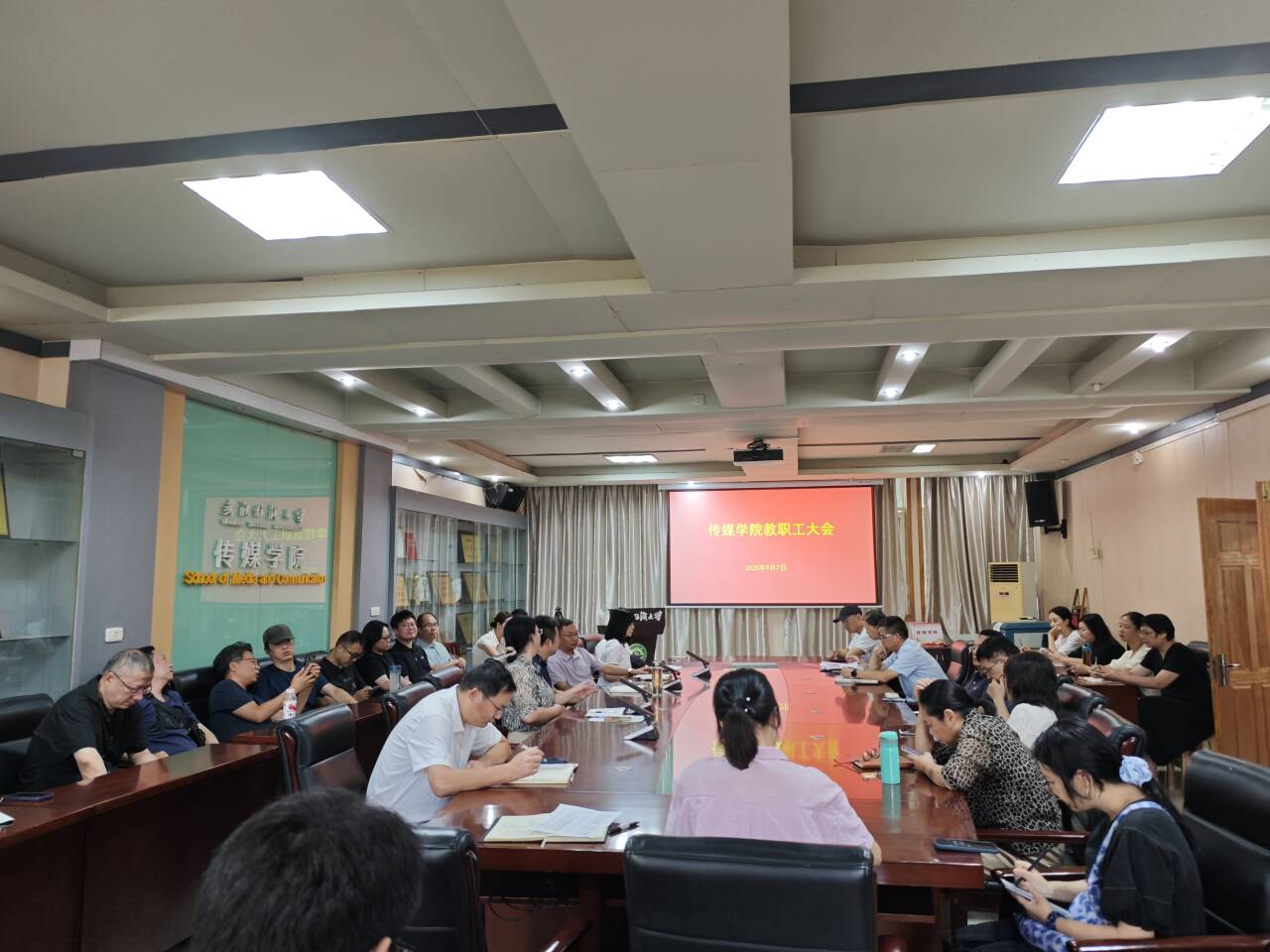 2025年9月7日,传媒学院在西经楼S209室召开新学期全体教职工大会,传达学校近期各项工作会议精神,通报学院新近发展成果,部署新学期重点任务。会议由学院党委书记曾令玉主持,全体教师参加会议。