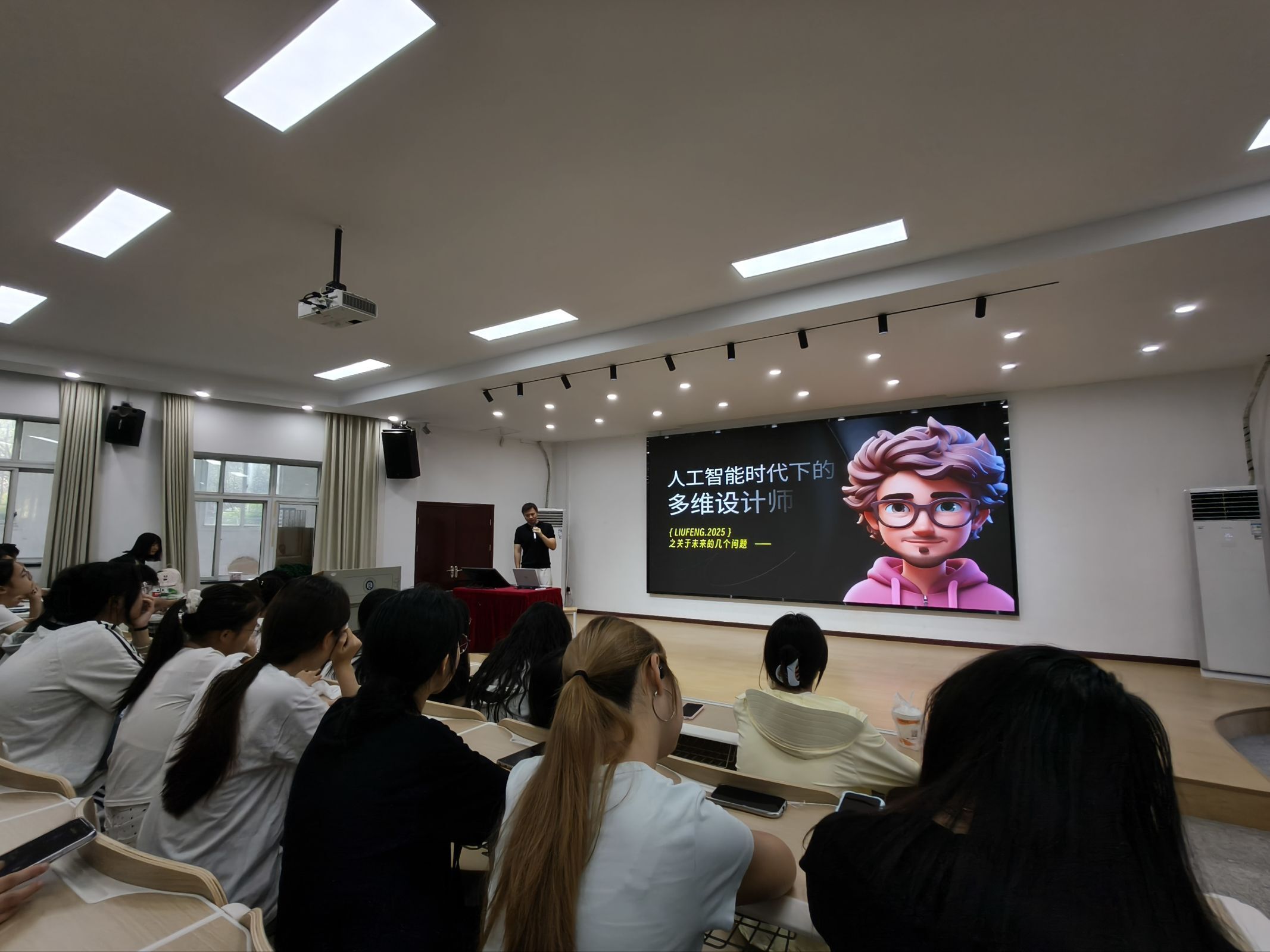 10月9日,武汉创宇极网络人工智能专家刘峰结合自身深耕软件产品用户体验设计领域的丰富经验,以“AI 技术重塑创作生态”为核心,系统解析了 AIGC(人工智能生成内容)在互联网、广告创意、电子商务、影视制作、新媒体运营等十大行业的应用场景与就业潜力。下午禾田星睿AIGC设计部门6位老师以即梦AI工具为实操载体,带领学生沉浸式体验AI 生成全流程。活动中,新生不仅初步了解了 AI 创作的核心工具、基础流程与创意逻辑,还通过实操练习完成了属于自己的简易AI 创作作品,激发了学生们对AI与创作融合领域的探索兴趣。