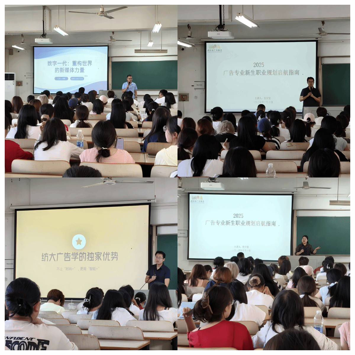 10 月11日,数字媒体艺术专业2025届毕业生、2025 级设计专业硕士研究生张天怡以“大学生活的多元打开方式”为题,从学业、社交、自我探索三个维度,围绕“学业平衡术”“社交成长圈”“自我探索路”展开讲解,建议新生建立“阶段目标清单”、积极参与实践结交同频伙伴、勇于“试错迭代” 寻找成长节奏;成功保研暨南大学的2023级网络与新媒体专业马祖昊则聚焦“保研赛道提前规划”,解读学校保研政策,拆解“核心竞争力打造”等四大考核维度,并现场绘制“保研时间轴”,助力新生明确努力方向。