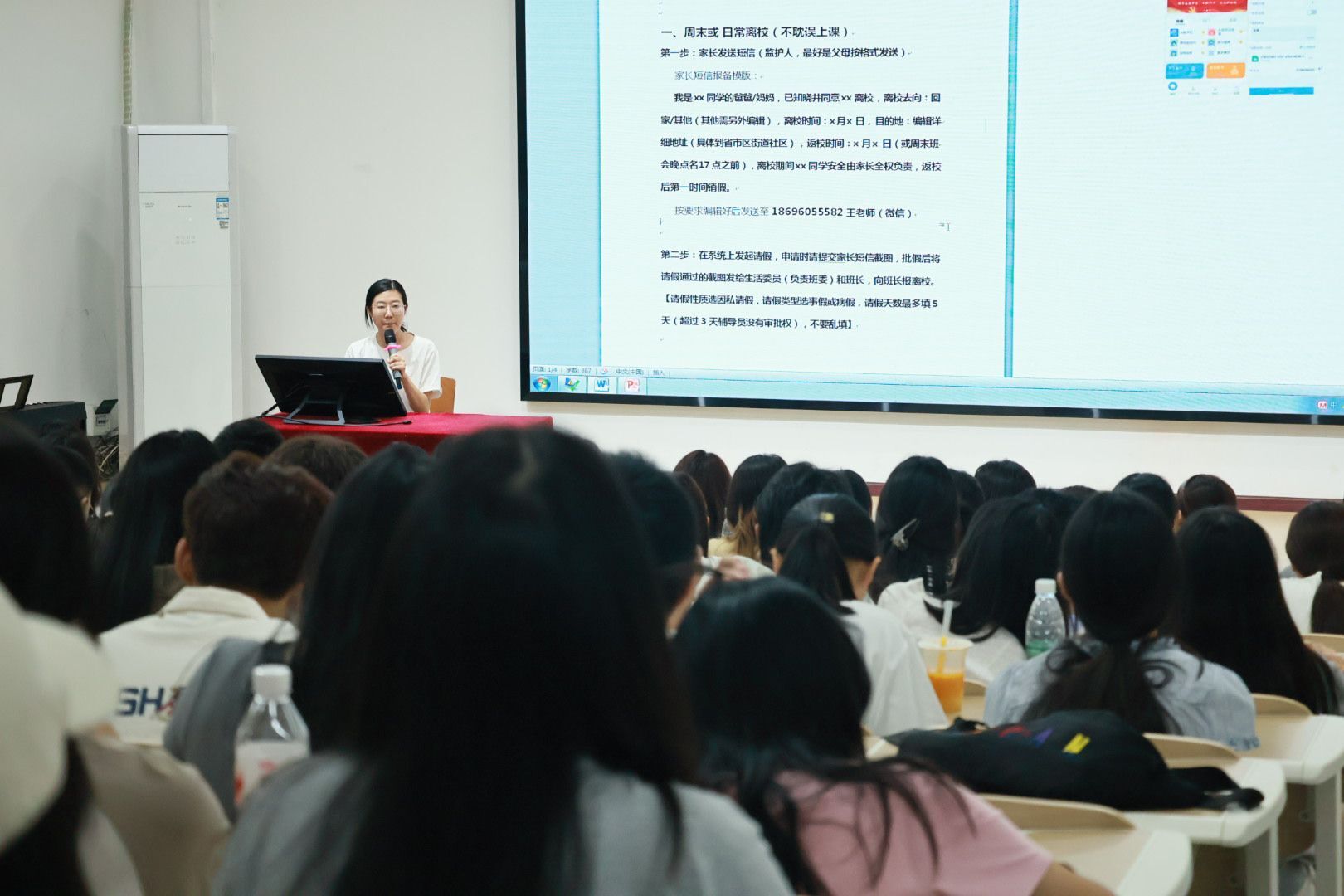 辅导员王思媛为新生详细解读《学生手册》,重点围绕毕业要求、考勤规定、宿舍管理、奖学金评定及医保报销五大板块展开讲解。她特别强调"双证毕业"的核心条件,明确绩点、学分、毕业论文等关键指标,并结合宿舍安全案例、医保报销流程等,帮助新生规避生活与健康管理中的"盲区"。