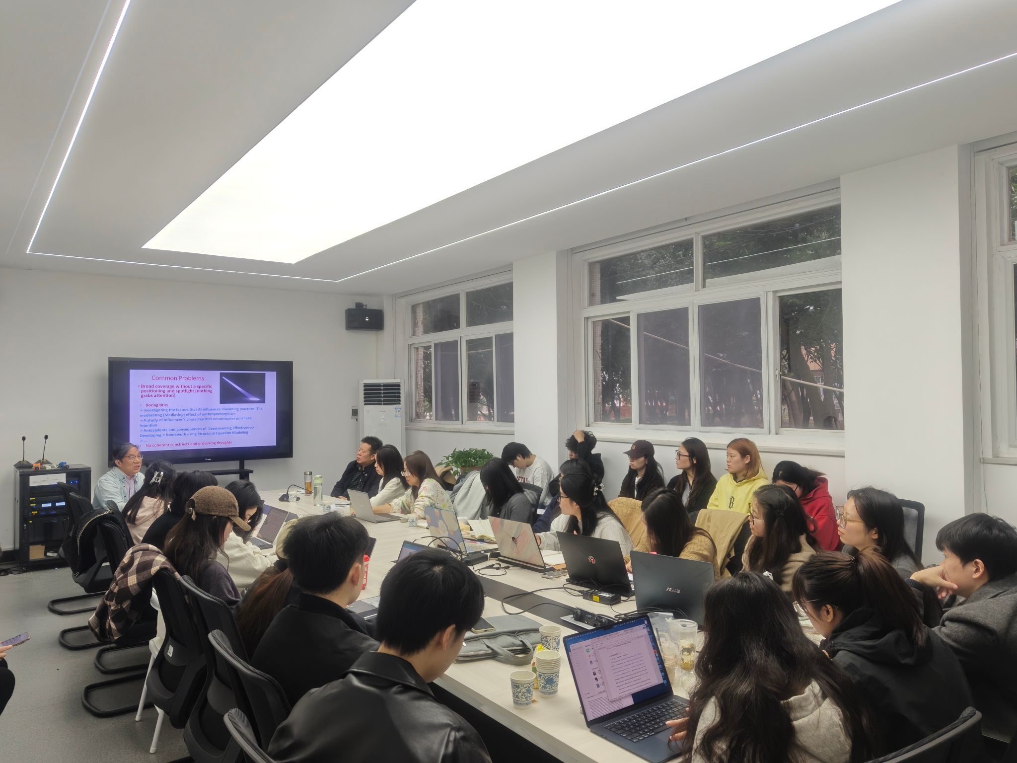 10月21日上午10时,武汉纺织大学2025年第859期阳光论坛在西配楼S105室顺利举行。美国纽黑文大学商学院营销学终身教授、市场营销学博士王承璐教授受邀为师生带来了主题为“Demonstrating contributions through storytelling-From editor's perspective”的学术讲座。在讲座中,他深入探讨了关于学术论文写作的相关问题,并提供了有益的指导。此次论坛由传媒学院院长望海军教授主持,传媒学院近50名教师和学生参与了讲座。