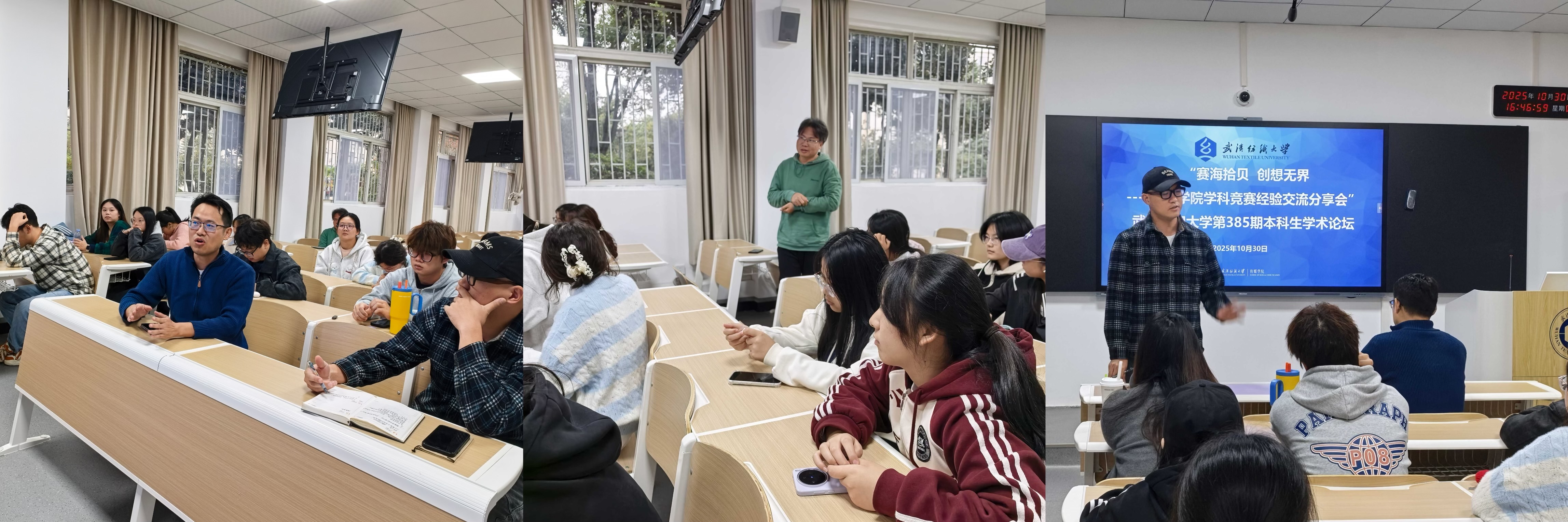 10月31日,武汉纺织大学第385期本科生学术论坛暨传媒学院第25期本科生论坛在南湖校区传媒学院N101教室举行。本次论坛以“赛海拾贝,创想无界——传媒学院学科竞赛经验交流分享会”为主题,邀请了7位在国家A级学科专业赛事中斩获佳绩的优秀学子分享参赛过程与感悟,2025级新闻传播学专业学生参加论坛,广告学系主任冯易副教授、数字媒体系杨轮副教授、实验教学中心主任朱煜出席并点评。