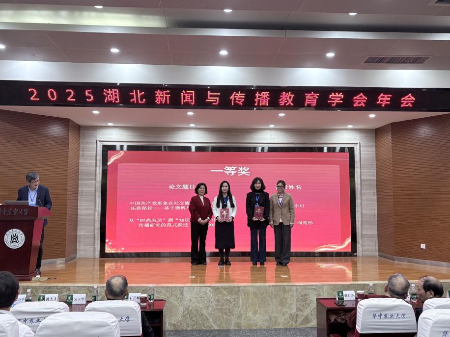 传媒学院师生以开放的学术视野和鲜明的研究特色,聚焦时尚传播的知识体系重构、数智化时代新闻传播人才培养的结构性挑战、以及社会治理语境下的风险与文化传播实践等议题,系统展示了传媒学院在理论前沿与教育实践等方面的探索成果。其中,刘亚老师和研究生徐小可分享的《中国共产党形象在社交媒体上的传播范式与拓新路径—基于微博与X平台的比较研究》,马旭老师、马庆老师和研究生周楚彤分享的《从“时尚表达”到知识自觉”:中国时尚传播研究的范式跃迁》获得会议论文一等奖;马庆老师分享的《技术赋能与价值引领:数智时代时尚传播人才培养的失衡与重构—武汉纺织大学的实践反思》、李展老师和本科生李欣雨分享的《社会治理视角下山东乡村产业的风险信息传播研究—以寿光蔬菜产业发展与水灾信息传播为例》获得会议论文优秀奖。