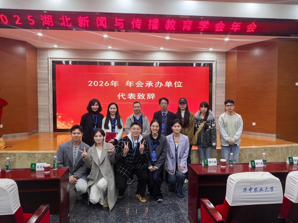 11月8日,2025年湖北新闻与传播教育学会年会暨“新文科背景下的数智化新闻传播人才培养”论坛在华中农业大学召开。会上,武汉纺织大学传媒学院师生荣获论文一等奖2项、优秀奖2项,8项新闻技能大赛奖;学会正式宣布武汉纺织大学传媒学院成功获得2026年年会承办权,传媒学院马庆副院长代表承办方致辞。