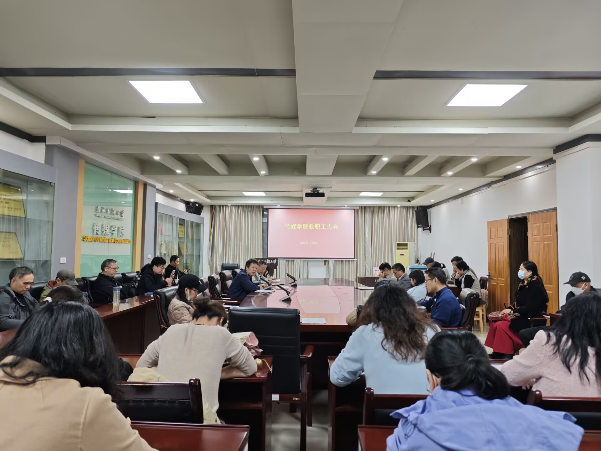 11月6日下午,传媒学院在西经楼S209会议室召开全体教职工理论学习大会,深入学习贯彻党的二十届四中全会精神,围绕《中国共产党第二十届中央委员会第四次全体会议公报》《中共中央关于制定国民经济和社会发展第十五个五年规划的建议》开展专题学习交流。学院领导班子及全体教职工参加会议,会议由院长望海军主持。