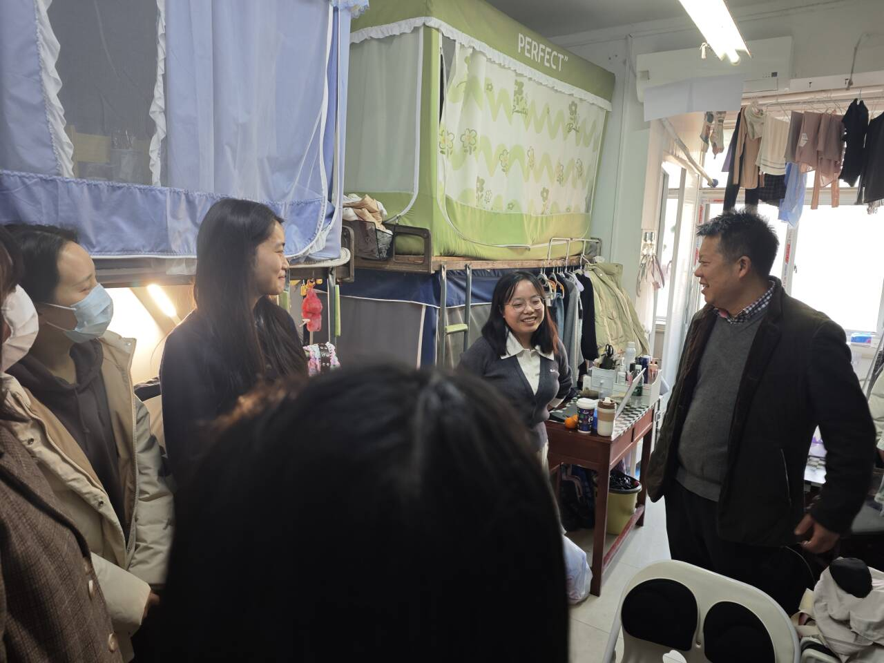 走访过程中,老师们化身“暖心师长”,认真倾听每一位学生的心声,针对学业发展、专业提升、职业规划等核心问题逐一答疑解惑,给出切实可行的建议。同时,反复叮嘱同学们务必绷紧安全之弦,做好防寒保暖,合理安排作息、做到劳逸结合,并鼓励室友之间相互包容、彼此扶持、携手共进。一句句暖心的叮嘱、一次次真诚的交流、一个个关切的眼神,让同学们在寒冬中感受到如家人般的温暖,更坚定了奋进前行的信心与决心。