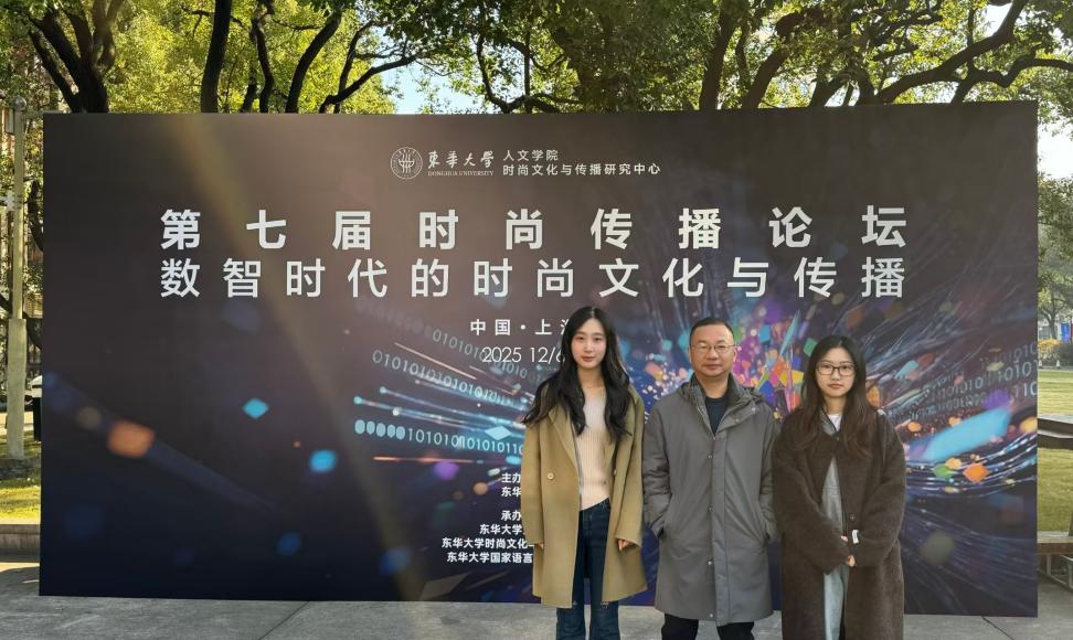 12月6日,第七届时尚传播论坛在东华大学召开。此次论坛以“数智时代的时尚文化与传播”为主题,吸引了国内外100多位学者与行业精英参加。论坛围绕数智中国与时尚文化、人工智能与时尚传播、时尚产业与数智教育三大议题展开,传媒学院副院长马庆教授携2024级新闻与传播专业研究生赵婉莹、明雨欣受邀参会并作主旨发言。