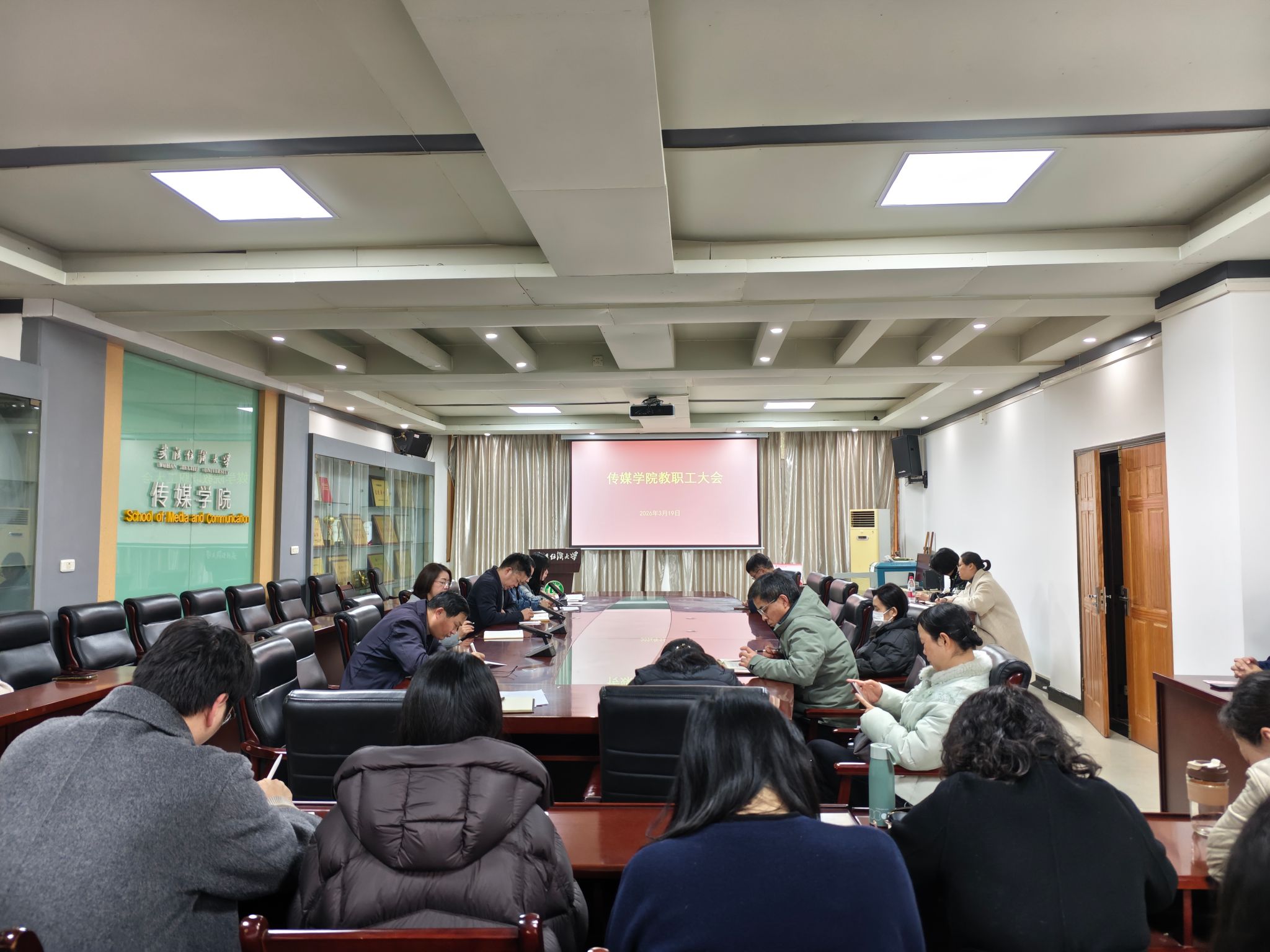 3月19日下午,传媒学院在南湖校区西经楼S209会议室召开教职工大会,系统部署教学改革、科研攻坚、学科特色凝练与人才培养等重点工作。会议由学院党委书记秦梦主持,学院全体教职工参加会议。