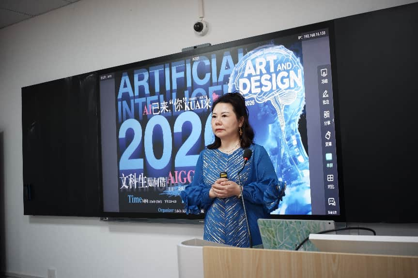 2026年4月18日下午,湖北工业大学工程技术学院栾黎荔教授应邀莅临我院,以“文科生如何利用 AIGC 平台创作高质量参赛作品”为主题开展专题讲座。本次讲座作为 “智享荟”—— 传媒学院 AI 创作实践与前沿视野系列讲座2026年首期活动,紧密围绕中国高等教育学会推荐榜单赛事,聚焦平面设计、视频创作、文创产品开发等核心竞赛赛道,精准破解文科生因美术基础薄弱而不敢参赛的现实难题,积极探索人工智能时代背景下新文科人才培养的创新路径。